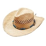 Wide Brim Summer Hat, Cowboy Hat Style, Organic Raffia Straw, Sun Protection, with Exotic Bead From Tibet Review